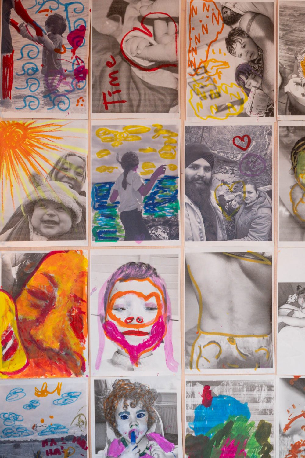 This is a collaboration between myself (having become a mum) and the mums who attend drop in session with their pre-schoolers at Cocoon Early Years sessions. It’s a project about what it’s really like to be a parent. What do you love? What do you hate? What do you gain? What do you lose? And are you still you? We explored these questions together through creative activities.
